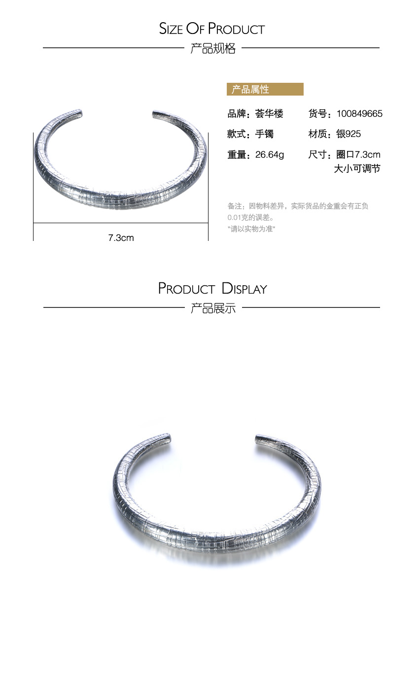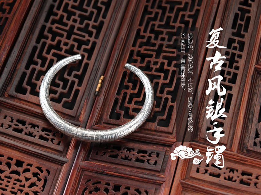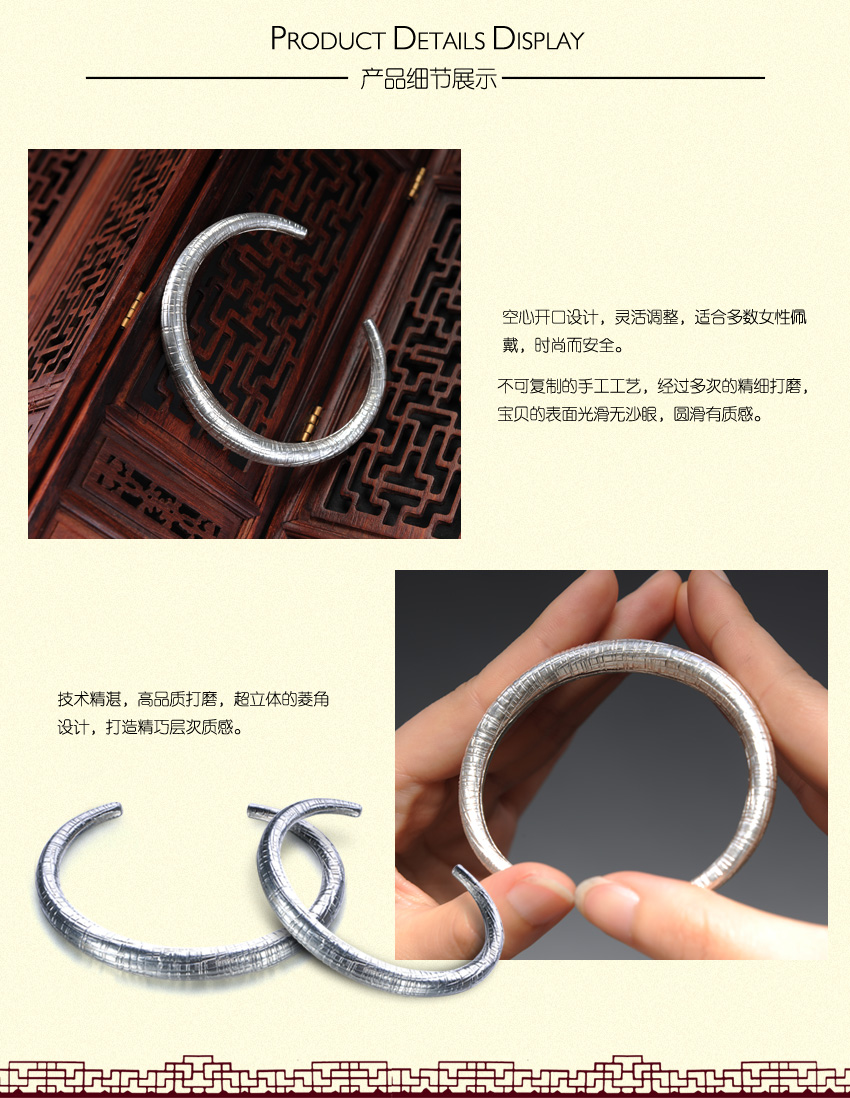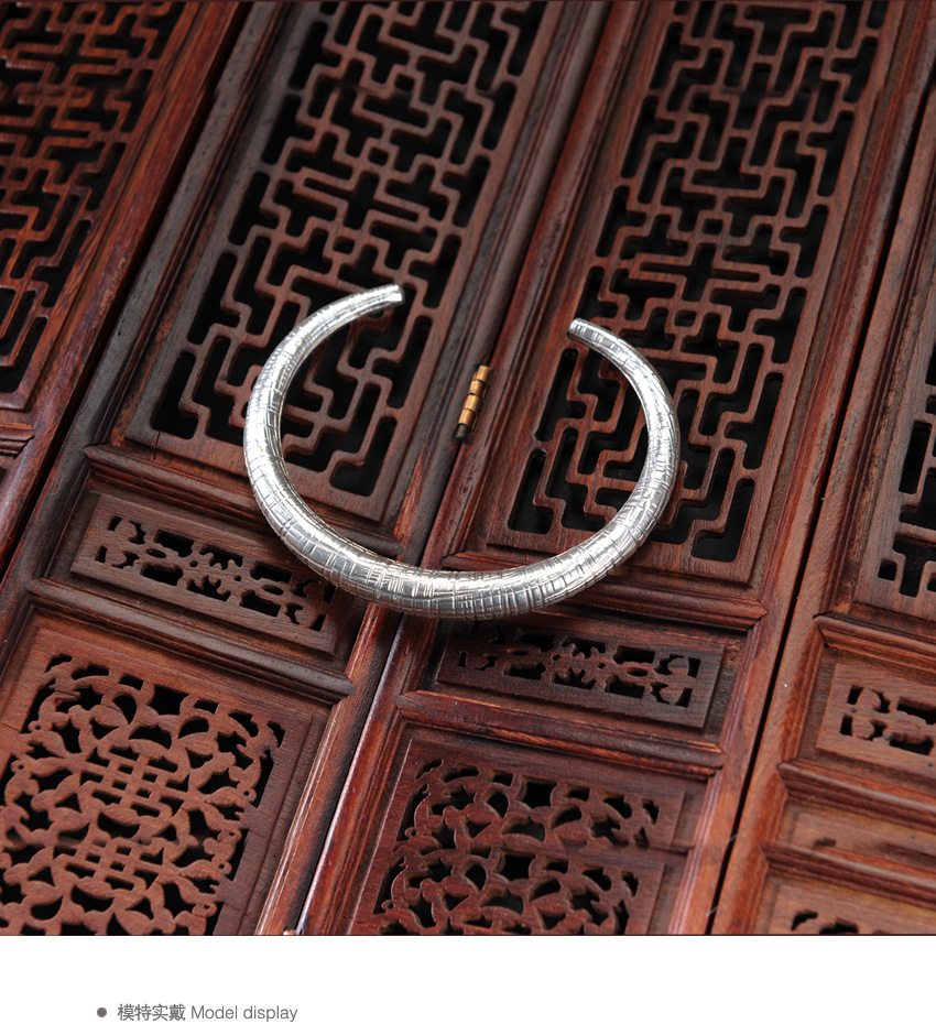 复古风银925手镯—纯银饰品开口手镯首饰腕饰