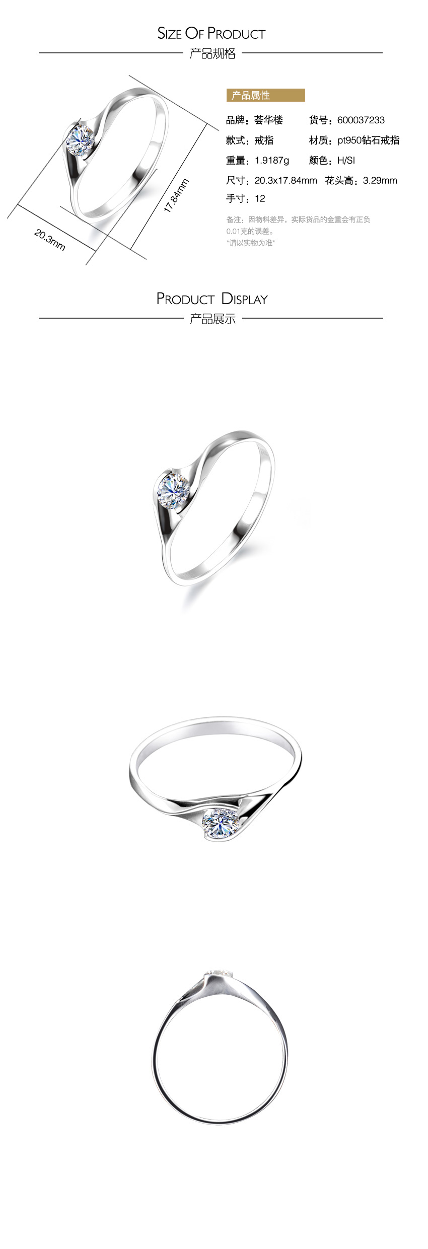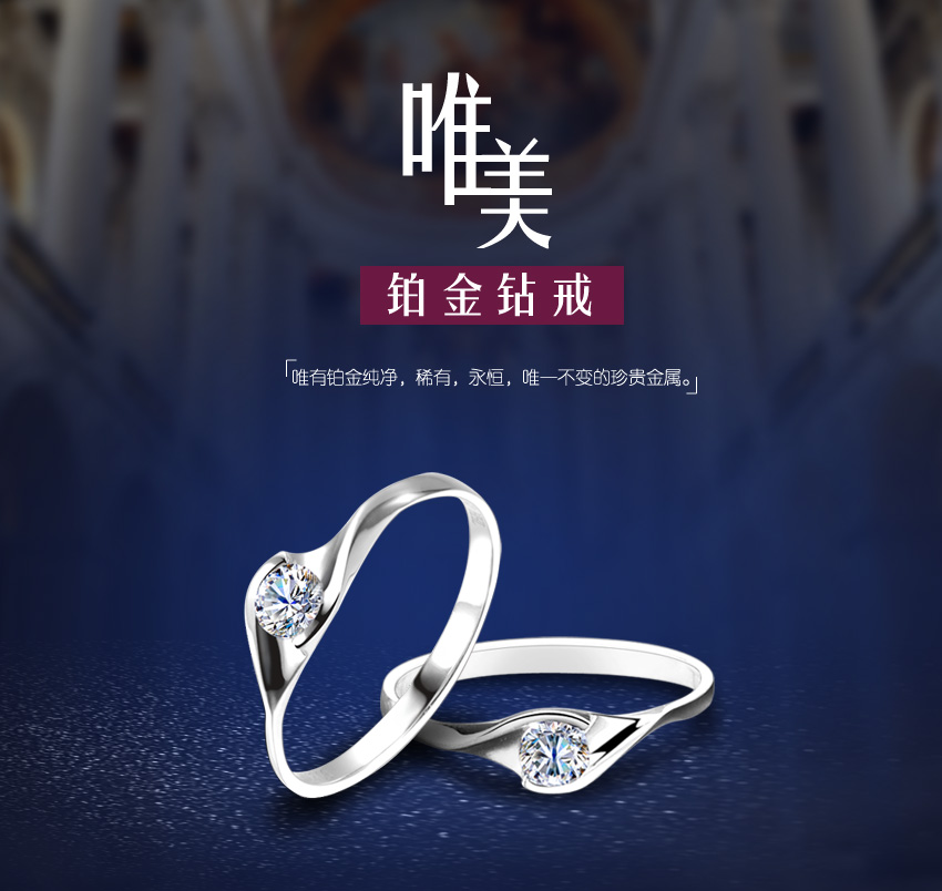 唯美PT950钻戒—求婚钻石戒指结婚女戒