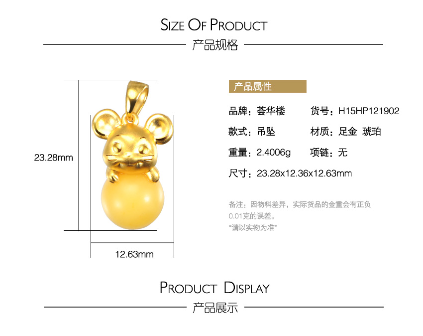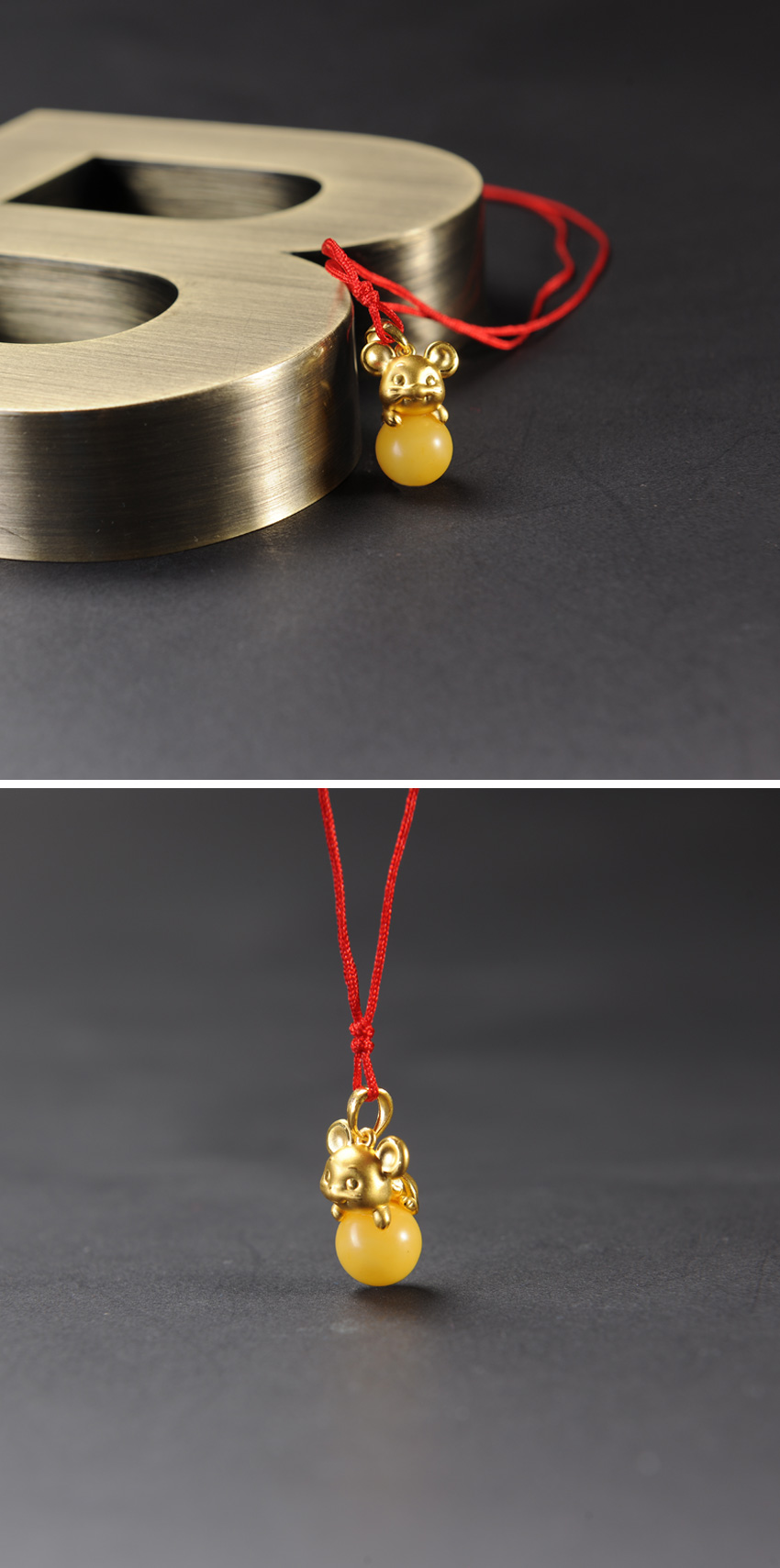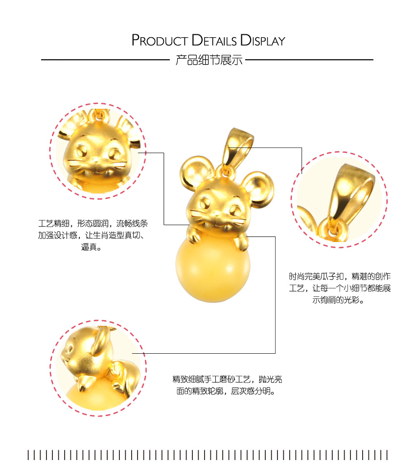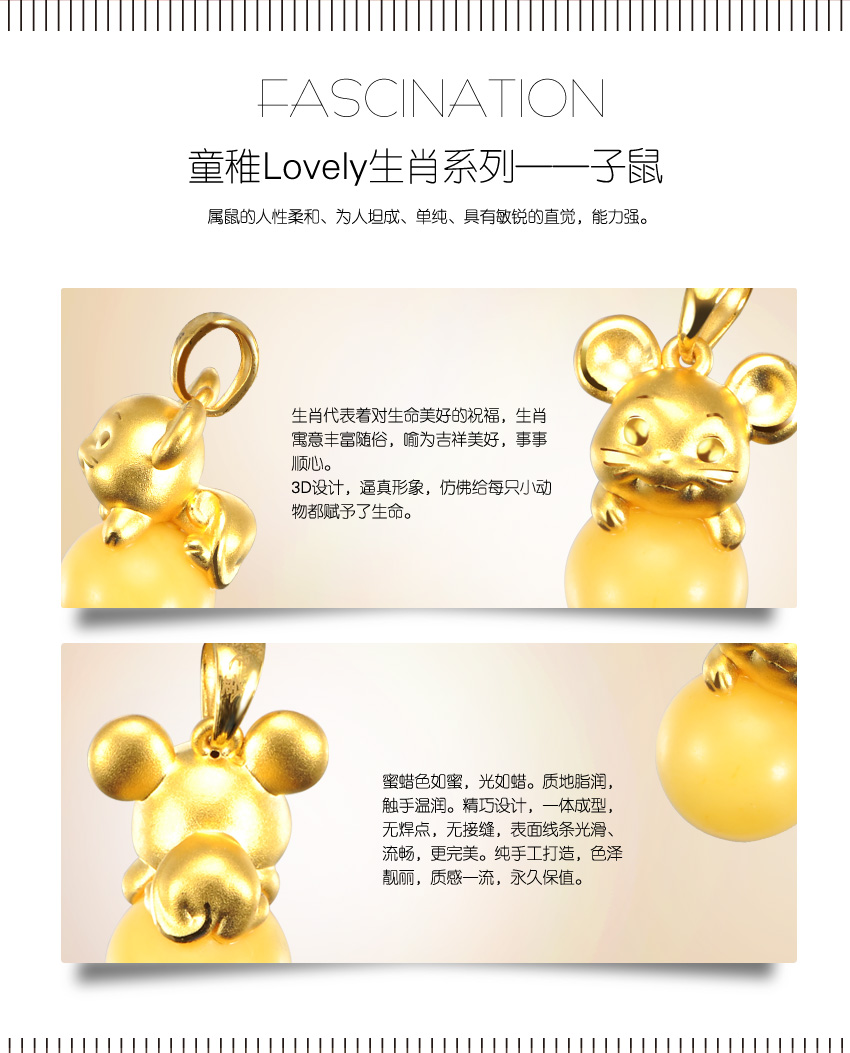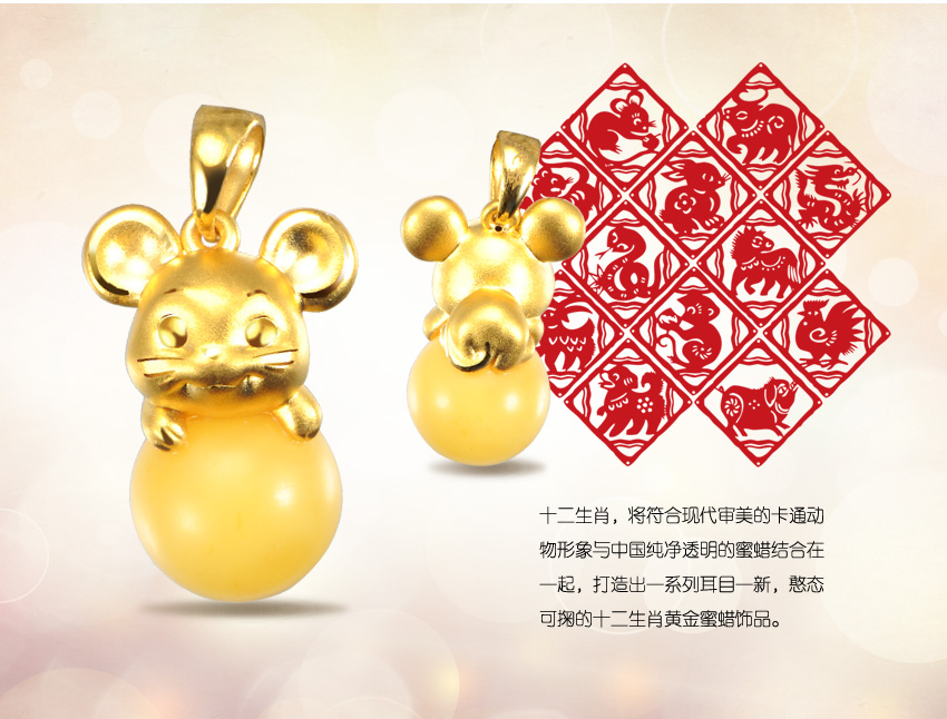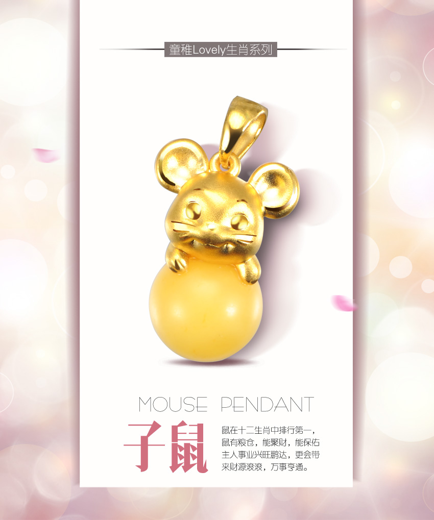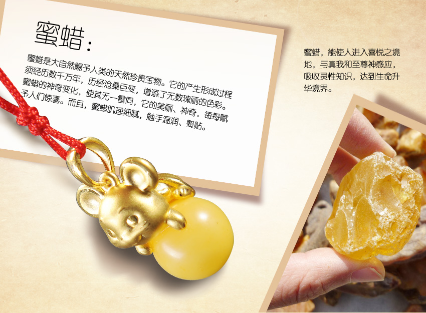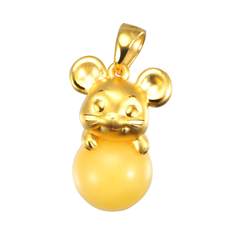 童稚Lovely生肖系列—蜜蜡十二生肖之鼠足金吊坠