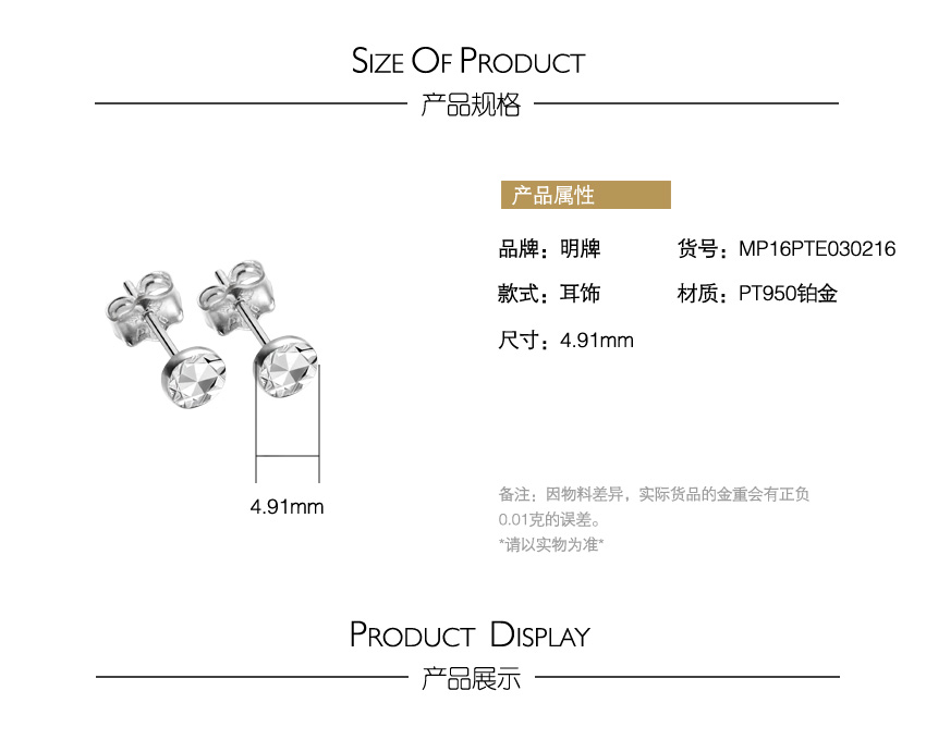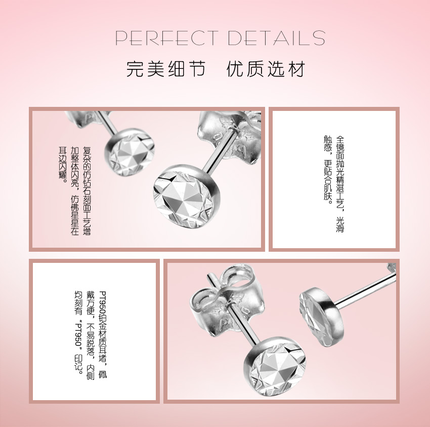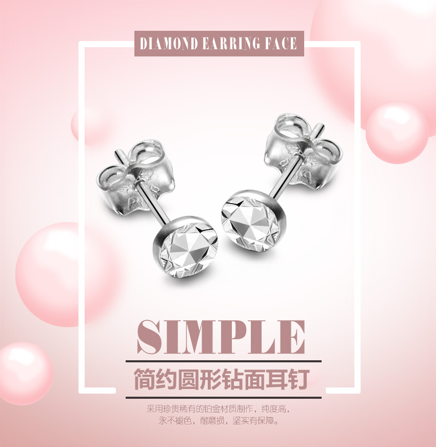简约圆形钻面铂金耳钉—PT950时尚创意圆形耳饰
